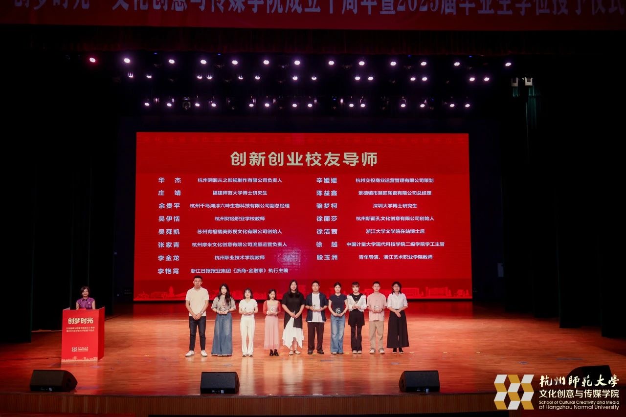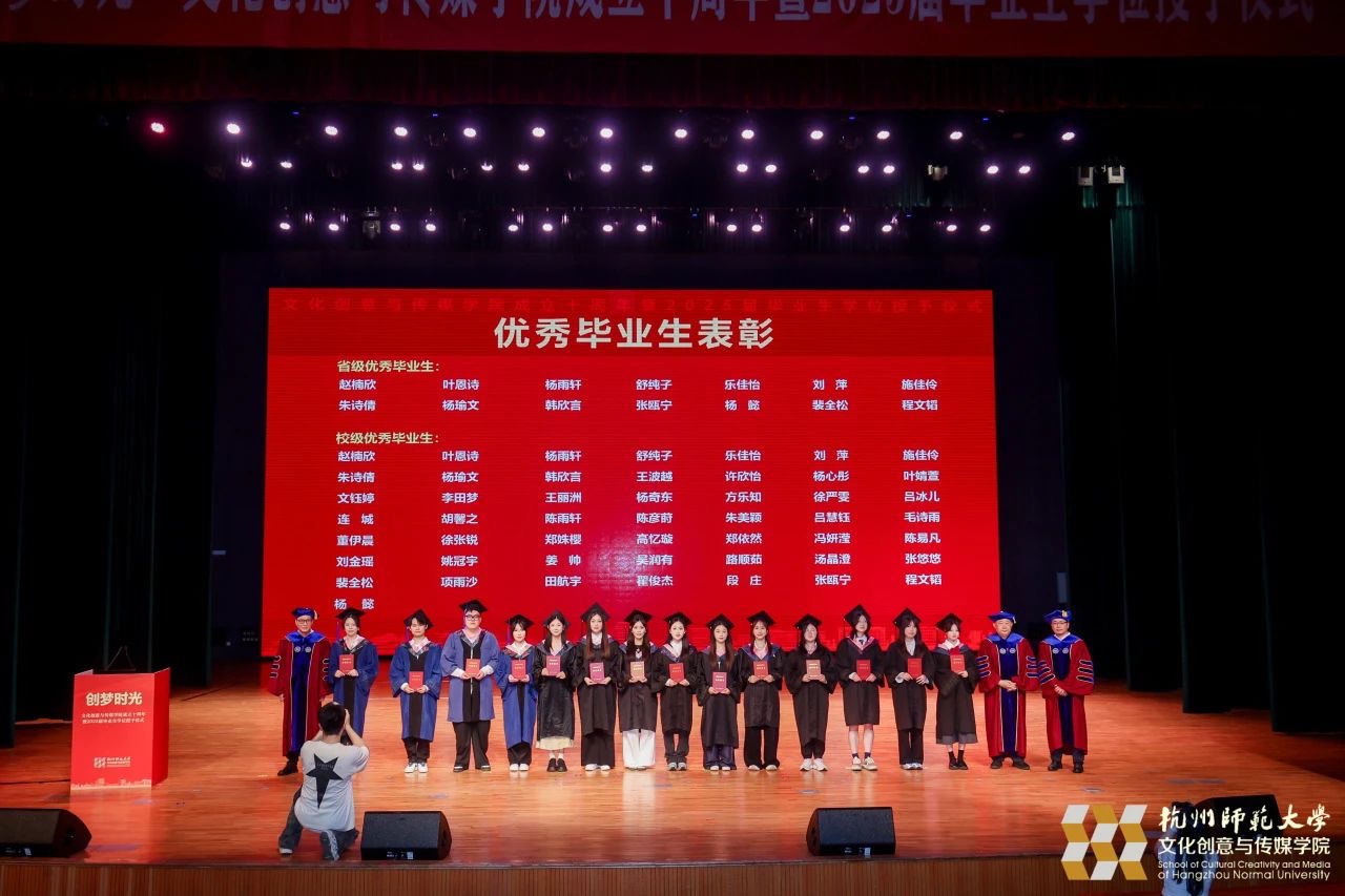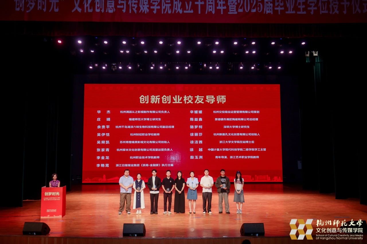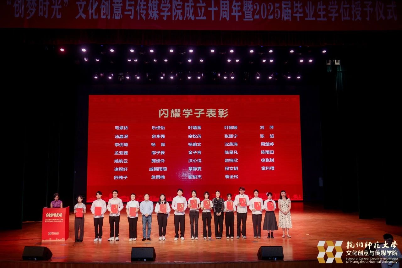 6月13日下午,“创梦时光”杭州师范大学文化创意与传媒学院建院10周年暨2025届毕业生学位授予仪式隆重举行,回首杭师大文传人十年栉风沐雨、砥砺前行的奋斗足迹,庆祝学院建院10年来的辉煌成就,并见证2025届毕业生奔赴山海。