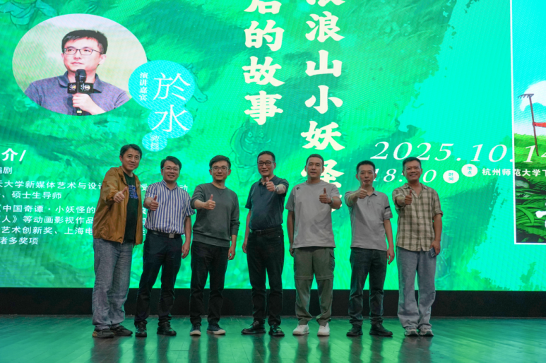 2025年10月14日晚,我院邀请到知名动画导演、北京航空航天大学新媒体艺术与设计学院教授、数字动画艺术系主任、硕士生导师於水,在杭师大下沙校区钧儒厅为大家带来一场题为“《浪浪山小妖怪》背后的故事”的精彩讲座。讲座由学院动漫系主任陈孟伟主持,范小春院长、陈勋书记出席,吸引了院内外数百名师生参与,现场气氛热烈。