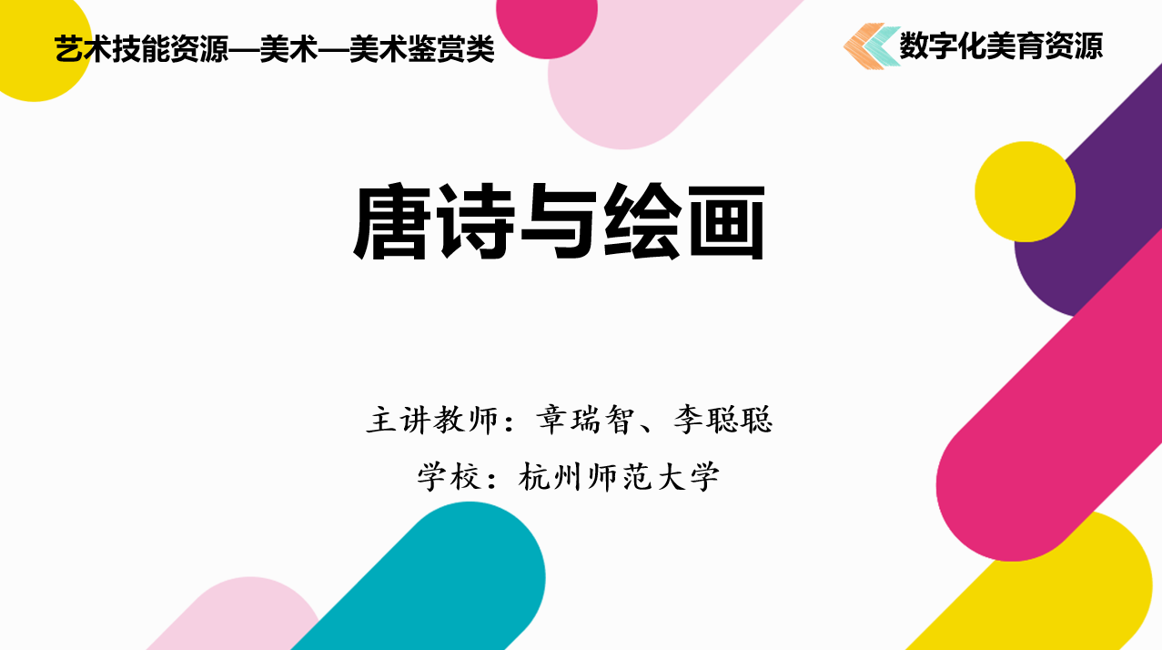 近日,教育部2025年度数字化美育资源和智能化美育应用案例征集遴选结果正式公布,我院章瑞智、李聪聪老师团队申报的美育课程资源《唐诗与绘画》成功入选,获评国家数字化美育资源。